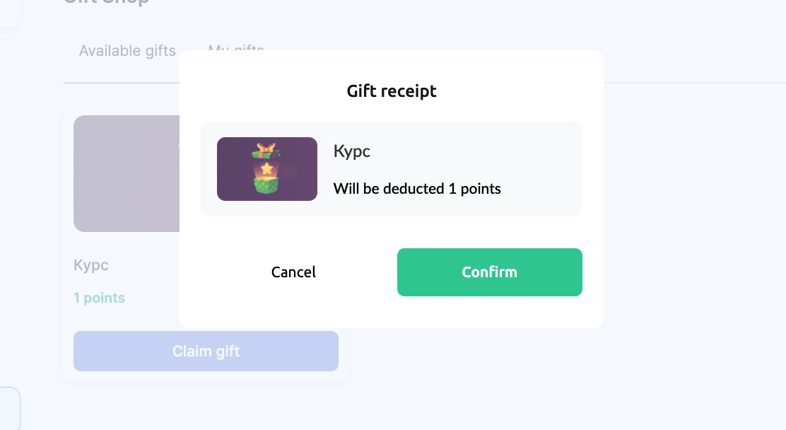 For earned points allows a student to exchange accumulated points for a gift. In the “Gift cost in points” field, specify how many points the gift costs (for example, 10 points). When setting the cost, consider how easy it is for students to earn points on your platform, the real value of the gift, and the desired speed of reaching the reward.
