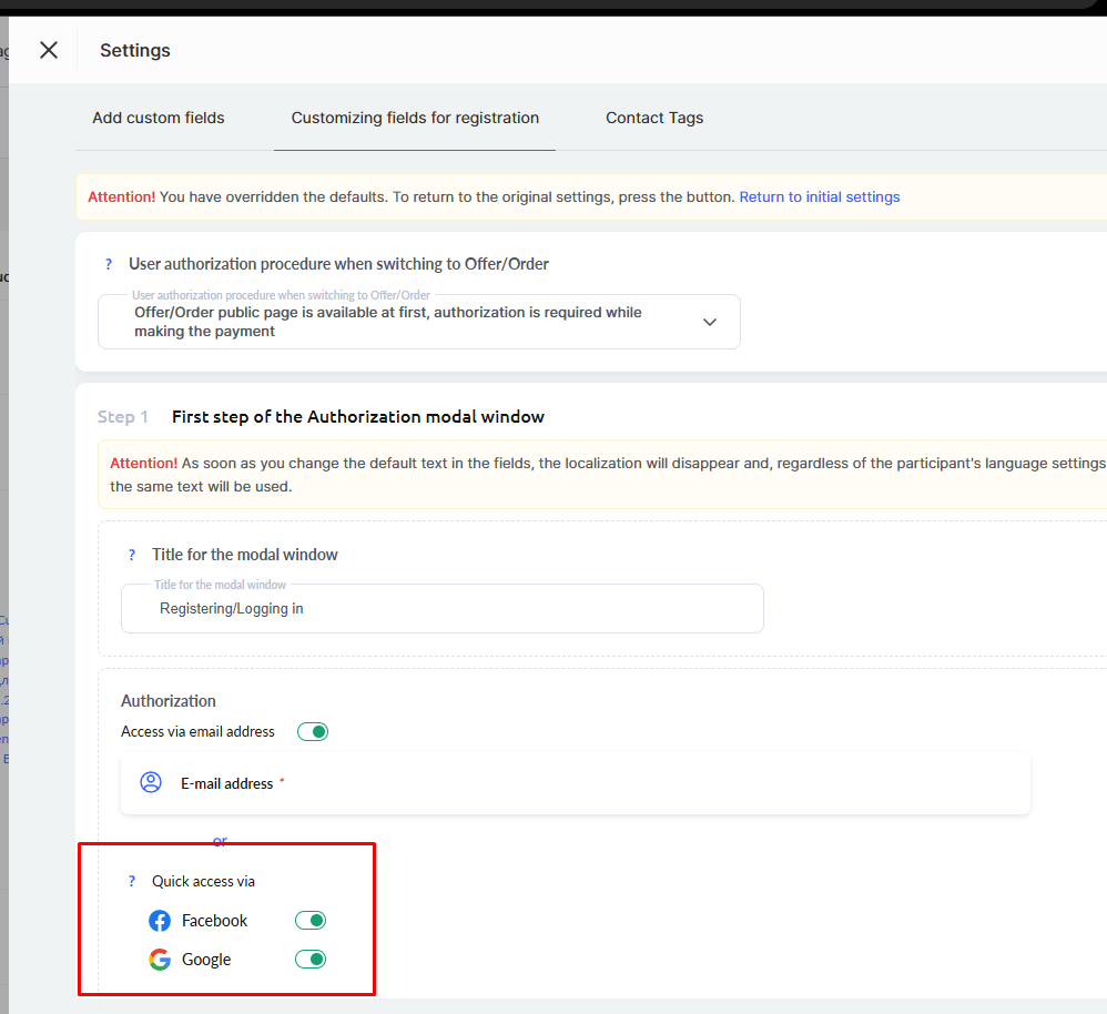 The screenshot below shows the toggle positions when clients will not be able to log in via social networks.