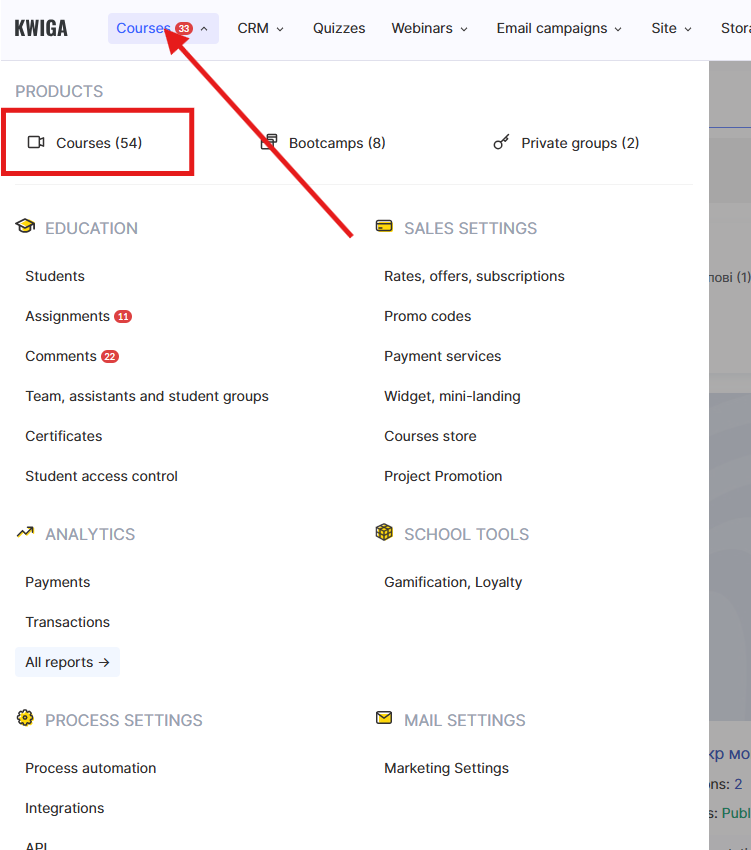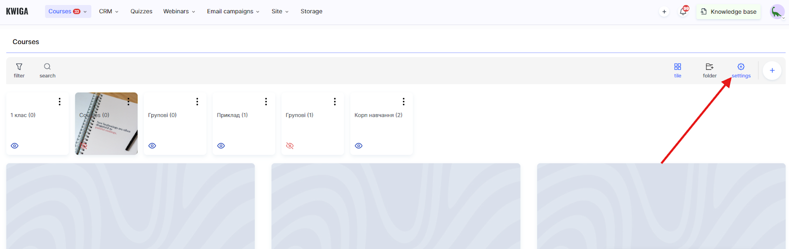 To do this, go to the Courses menu, find the required product, and open Course Settings on the Course tab.