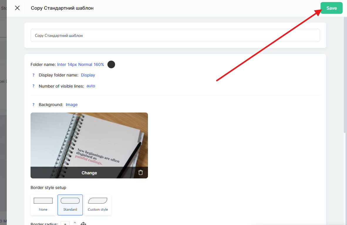 In addition to product cards, you can also customize the appearance of folders on the presentation page. This allows you to create a consistent style for all elements of your school.