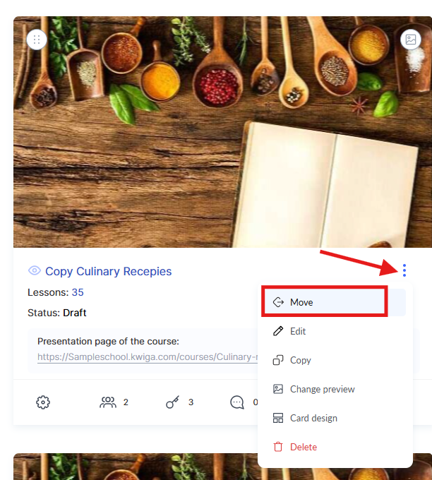 After that, you can add courses to the folder — to do this, select Move in the three-dot menu on the course card.