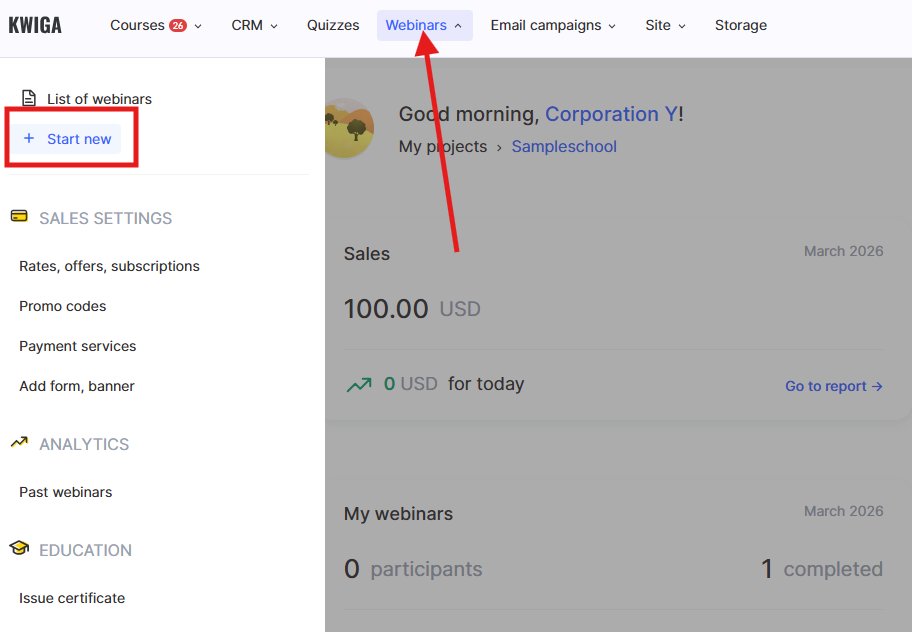 On Kwiga, this can be organized without third-party services. A webinar, a recorded course, a quiz, and a certificate — all in one dashboard. The participant completes the event and immediately receives a certificate via email, while you can view each participant’s results in the CRM.