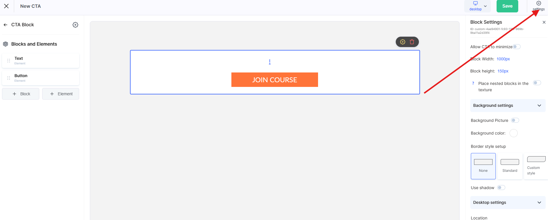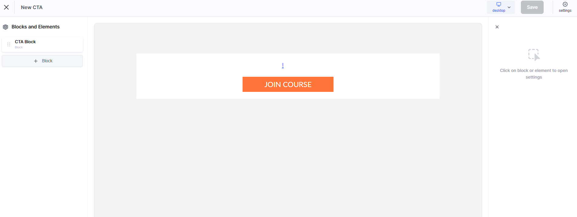To configure or create a form, go to Settings → Widget (CTA). Created CTAs can be used simultaneously across different websites, webinars, and lessons. In the Kwiga builder, you can create any form or banner consisting of blocks. Each block, in turn, can contain various elements: text, image, button, link, or field.