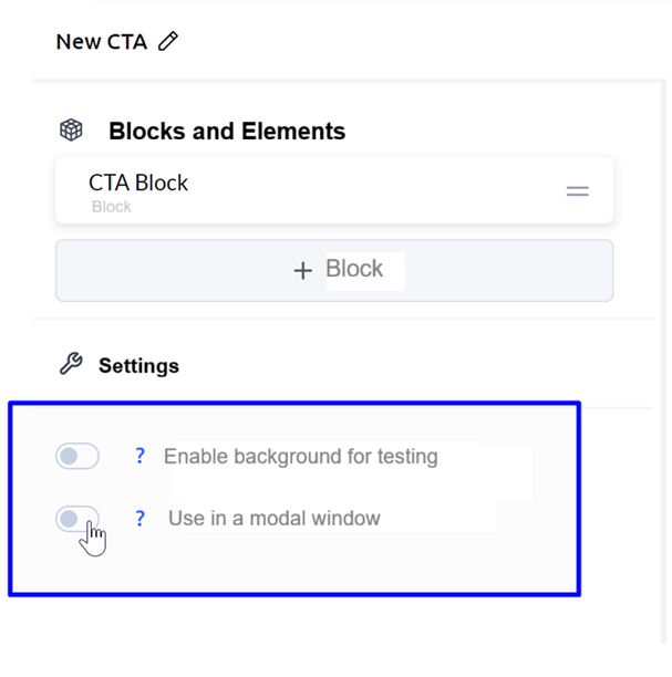 Use this option if you want to create a Call to Action (CTA). By default, the block contains two elements: text and a button. You can add more elements, modify them, or replace these elements.