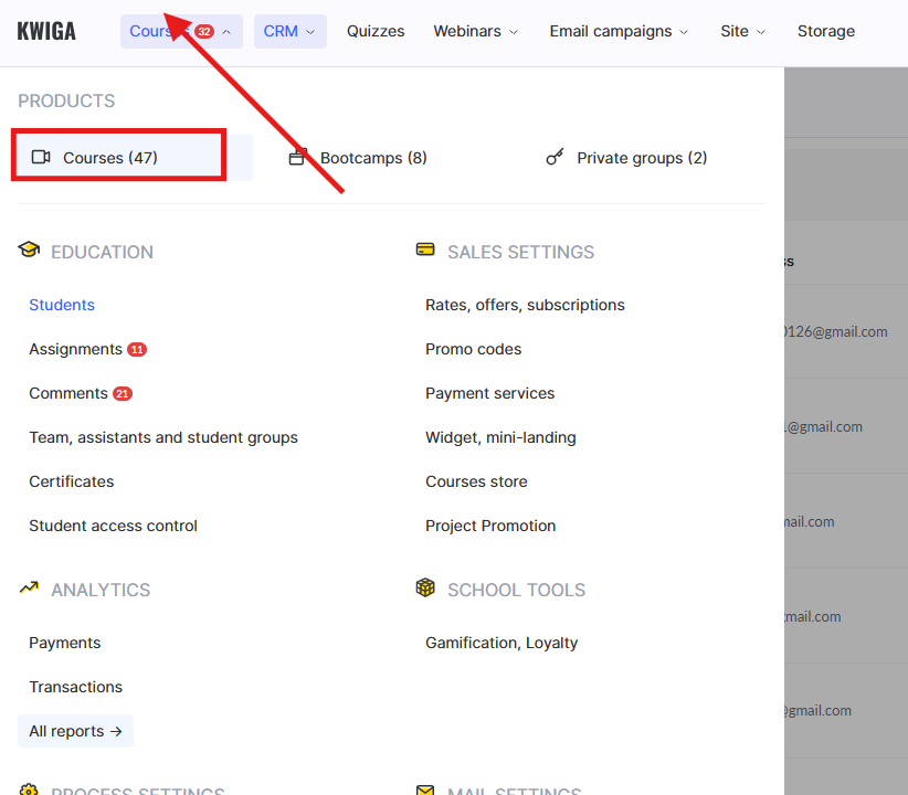 Importing students to Kwiga is a fast and convenient way to transfer your contact database, configure access, and automate workflows. You can add students directly to a course or import contacts into CRM for email campaigns and audience segmentation.
