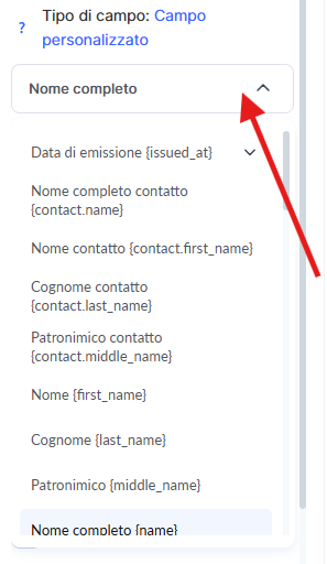 Se desideri controllare manualmente quale nome appare sul certificato (ad esempio, per modificarlo o specificarlo durante l’importazione di un elenco di studenti), utilizza le variabili della scheda contatto nel tuo CRM: