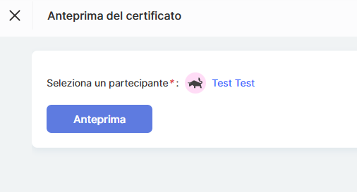 Questo ti permette di verificare la precisione dei dati, lo stile grafico e l’ aspetto generale del certificato prima di emetterlo.