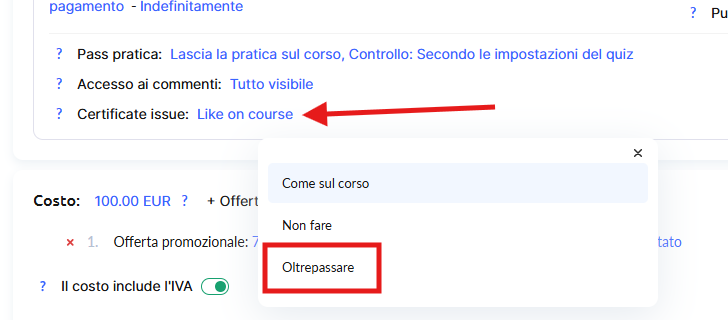 Questo è utile se desideri emettere certificati differenti in base al livello del partecipante o al tipo di abbonamento.