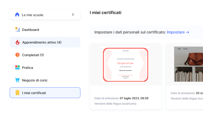 Se la lingua del profilo dello studente non corrisponde a nessuna delle versioni linguistiche disponibili del certificato, il sistema utilizzerà automaticamente la versione predefinita.