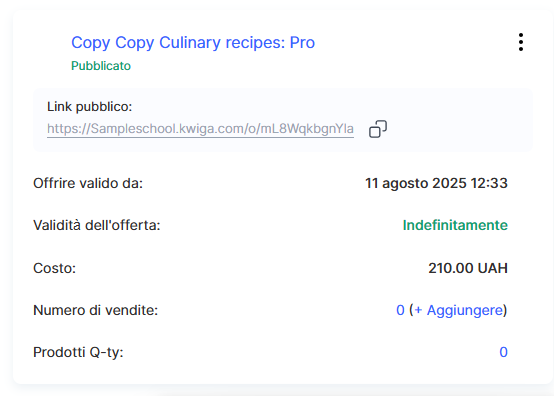 Un’offerta ti consente di personalizzare l’accesso al corso, impostare limiti di tempo, programmare la pubblicazione delle lezioni e assegnare un assistente. Se necessario, puoi concedere l’accesso direttamente dalla pagina delle offerte.