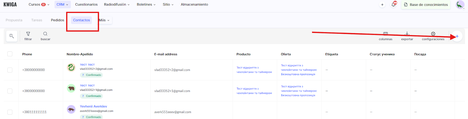 Il nuovo contatto apparirà nella parte superiore dell’elenco del CRM. Puoi trovarlo utilizzando la ricerca (per nome, indirizzo email, telefono, ecc.) oppure applicando dei filtri.
