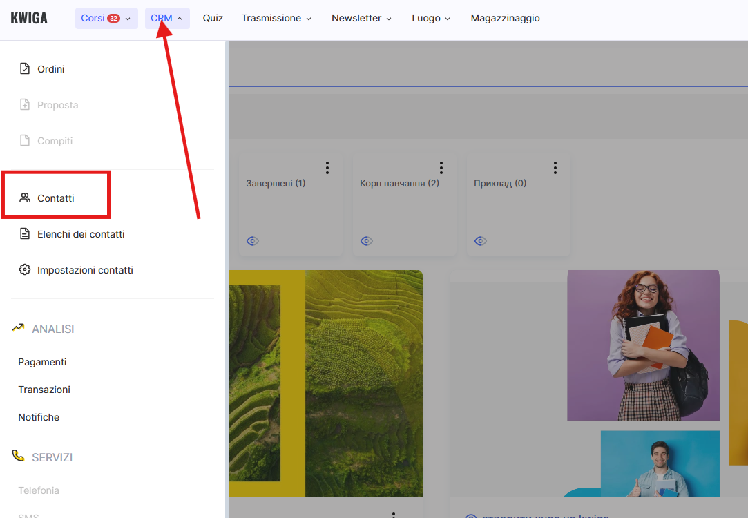 Su Kwiga puoi aggiungere facilmente un partecipante individuale a un corso aprendo l’accesso ai materiali. Questo può essere fatto in diversi modi: aprendo l’accesso all’interno del corso, aggiungendo uno studente tramite CRM oppure aprendo l’accesso tramite un’offerta.