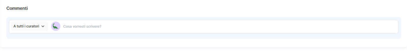 Quando scrivono un commento, i partecipanti possono scegliere il destinatario da un elenco. Il sistema mostra i tutor che hanno accesso a quel partecipante (accesso personalizzato o generale a tutti). Se ci sono più tutor, compare l’opzione Tutti i tutor: il commento sarà visibile a tutti i docenti con accesso.