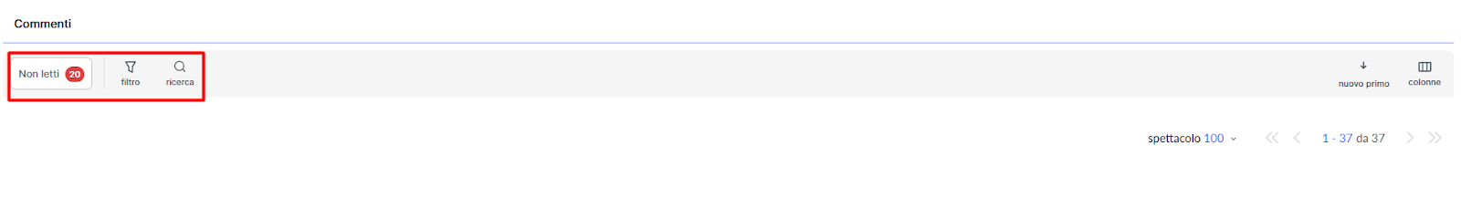 Tutti i commenti provenienti da tutti i prodotti sono inoltre disponibili in un menu globale Commenti.