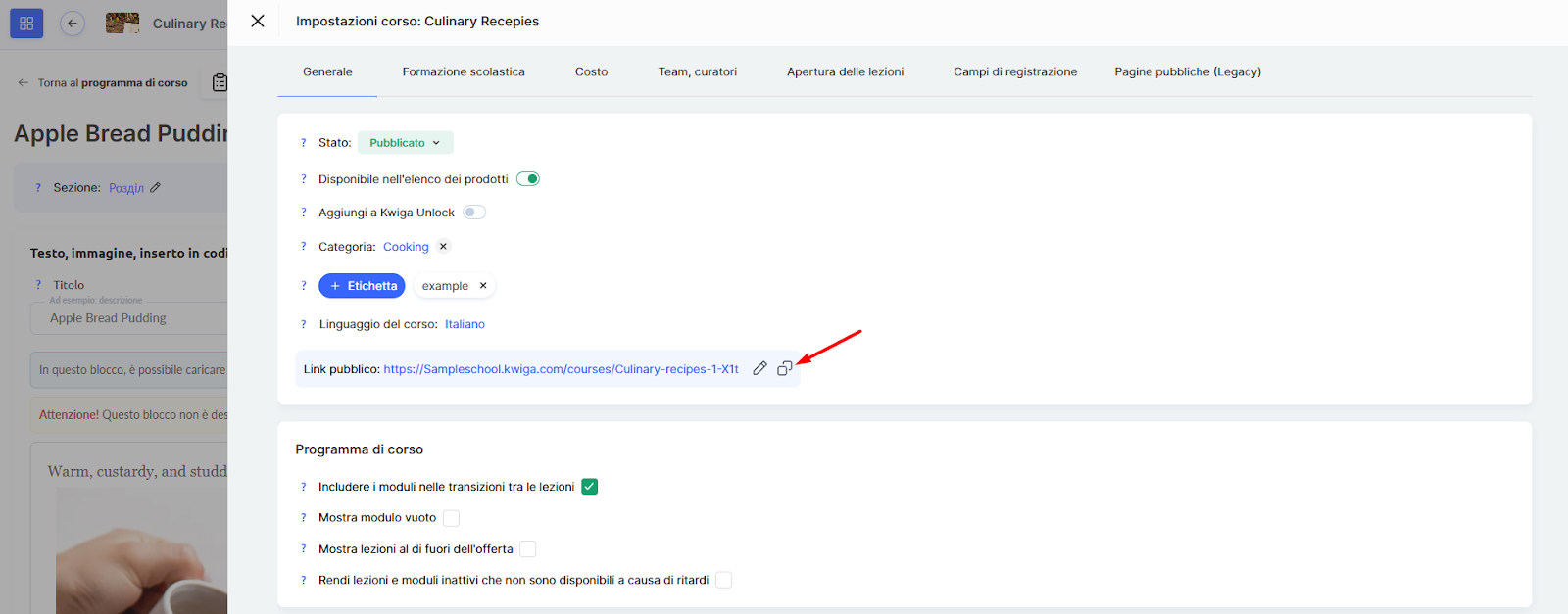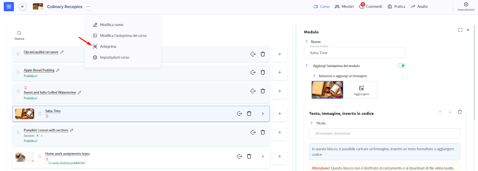 Inoltre, se apri il link pubblico del corso o di una lezione mentre sei connesso al tuo account, vedrai il corso (o la lezione) anche in modalità anteprima.