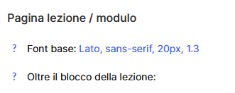 Il principale vantaggio di questo blocco è che le informazioni compaiono automaticamente su tutte le pagine delle lezioni — non è necessario aggiungerle manualmente a ciascuna lezione separatamente.