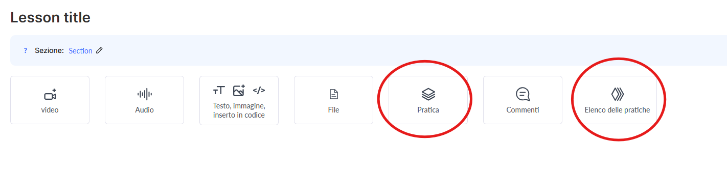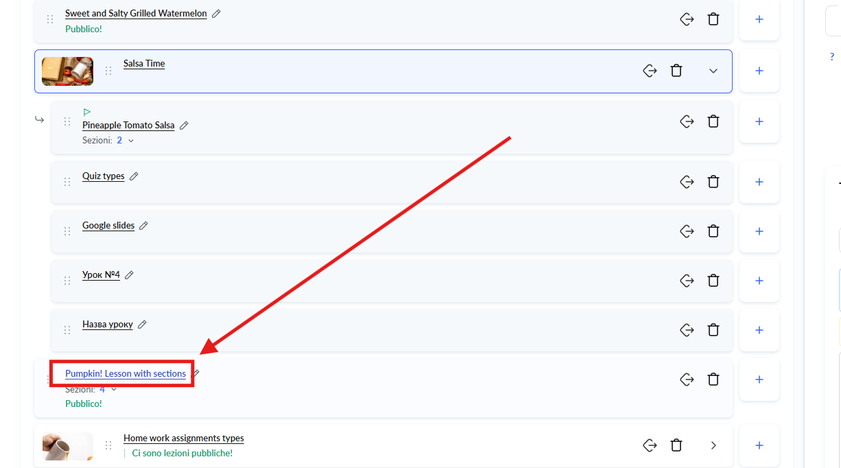 • Fai clic sul titolo della lezione in cui desideri aggiungere l’esercitazione