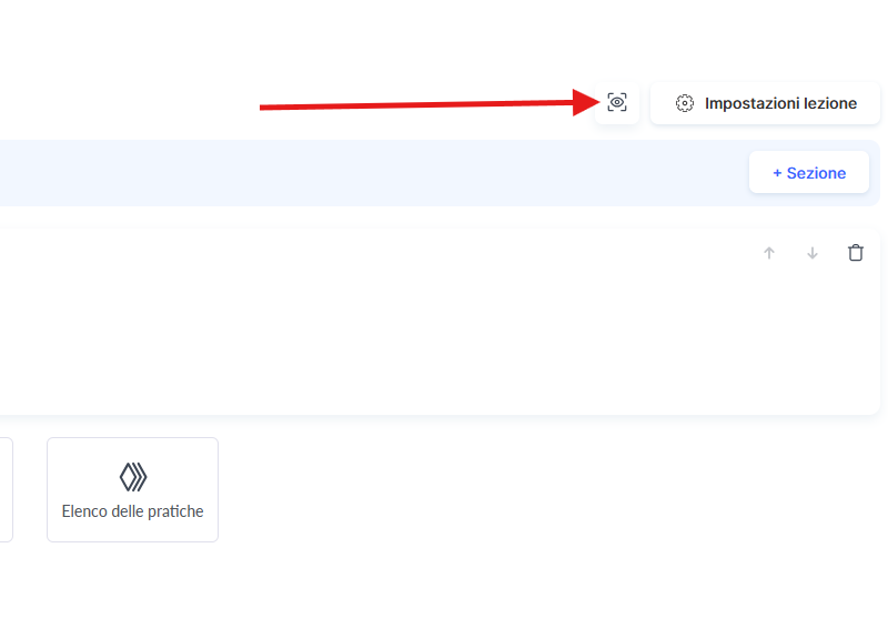 2. Nella parte superiore, fai clic sul pulsante Anteprima del corso — è l’icona situata accanto alle impostazioni della lezione.