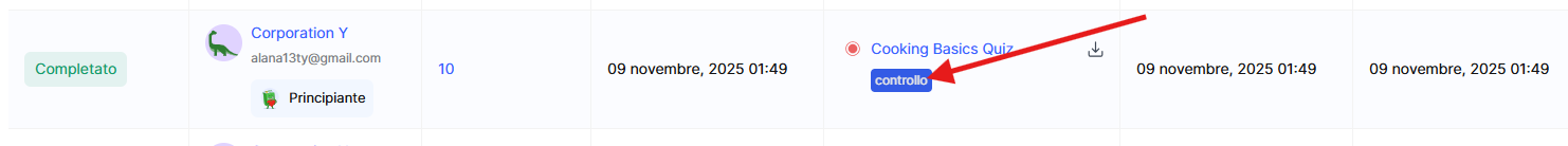 Nella finestra di revisione puoi visualizzare tutte le informazioni necessarie: il titolo della prova e della lezione, i dati dello studente e i risultati del suo lavoro.