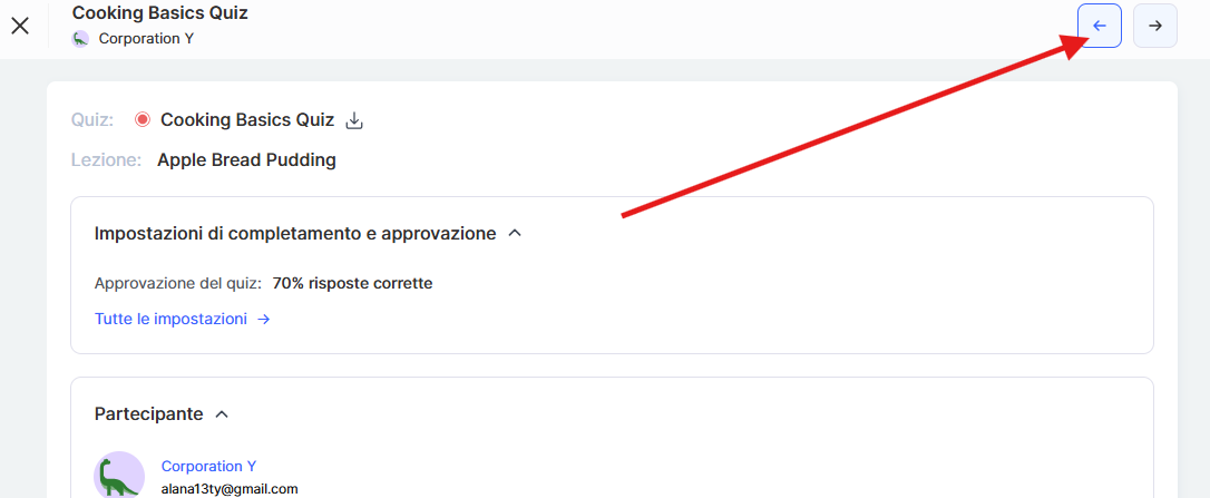 Consiglio: se lo studente ha utilizzato tutti i suoi tentativi ma desideri offrirgli un’altra opportunità, imposta semplicemente lo stato su Richiede revisione. Questo gli permetterà di ripetere la prova.