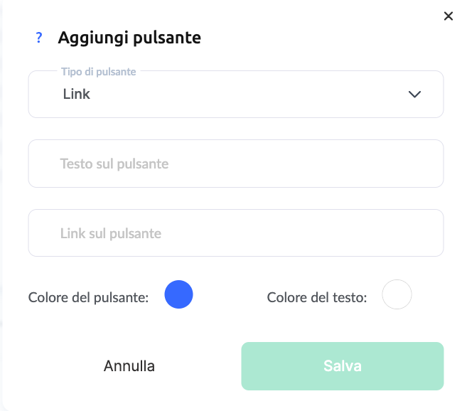 Nel menu che si apre, puoi aggiungere un link, impostare il nome del pulsante e personalizzare il colore del pulsante e del testo. Clicca su Salva e il pulsante verrà aggiunto alla lezione!