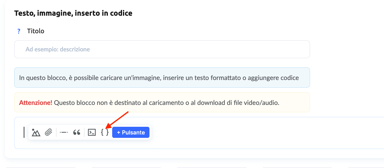 Poi apri l’editor di codice (se non vedi la barra degli strumenti dell’editor di testo, clicca nell’area bianca per attivare il campo di inserimento):