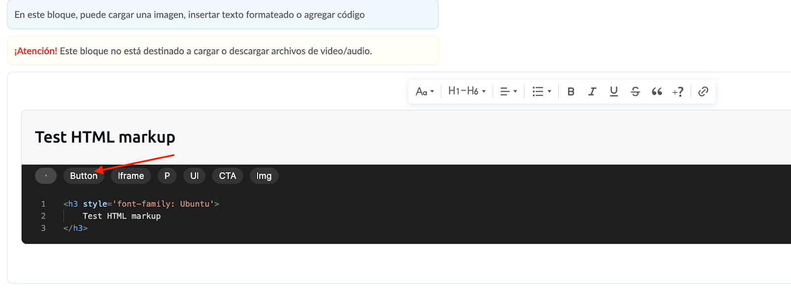Puoi aggiungere un pulsante a una lezione del corso o a un marathon utilizzando codice HTML. Di seguito ti mostriamo come farlo.