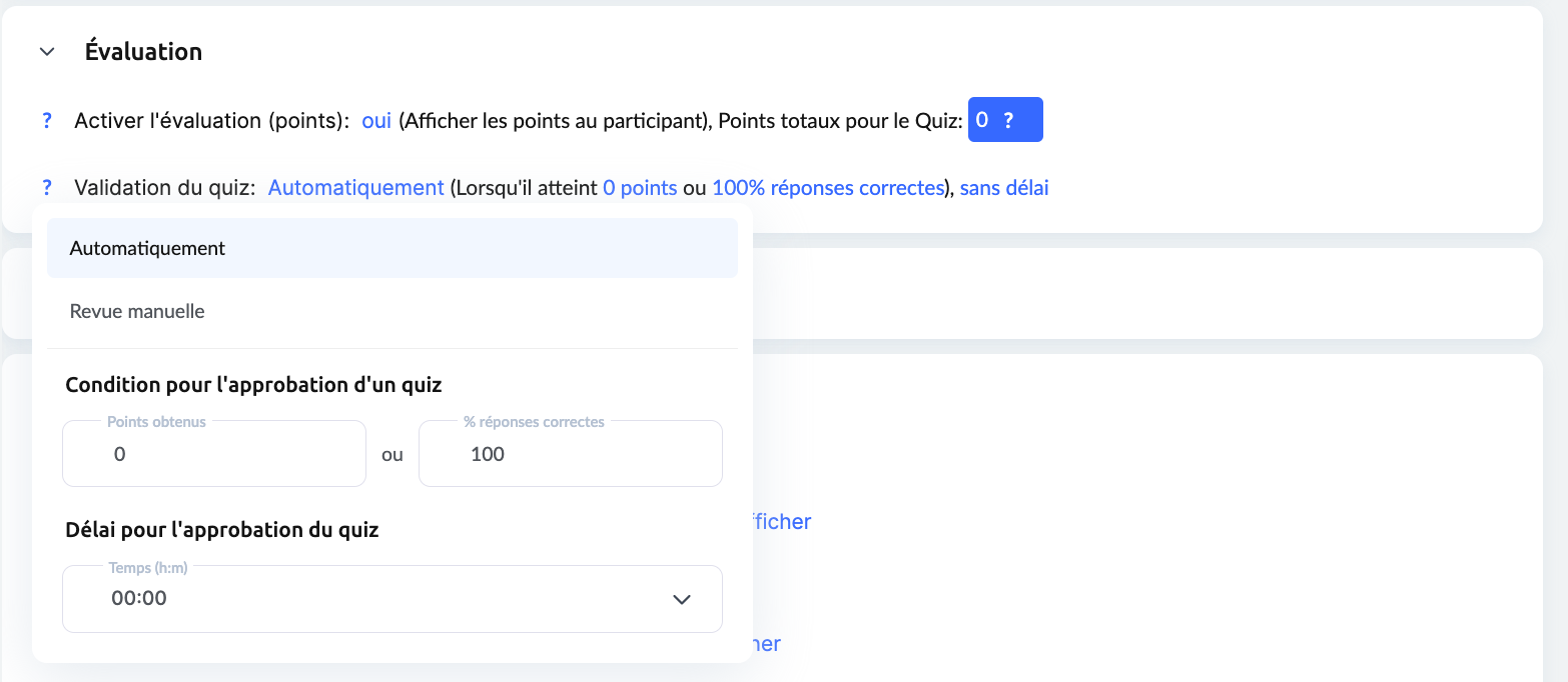 Nota: nelle impostazioni dell’offerta è possibile anche specificare chi approva il quiz – automaticamente oppure un assistente. Questa impostazione ha priorità più alta e consente di modificare il metodo di approvazione per un determinato piano tariffario.