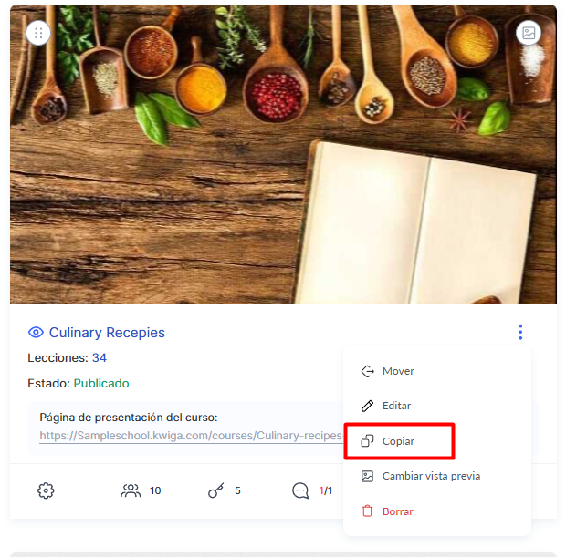 Come creare un duplicato del tuo corso su Kwiga, copiando materiali, compiti pratici e impostazioni per ogni lezione.