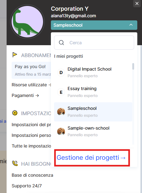 Puoi anche passare da un progetto all’altro tramite Gestione dei Progetti.