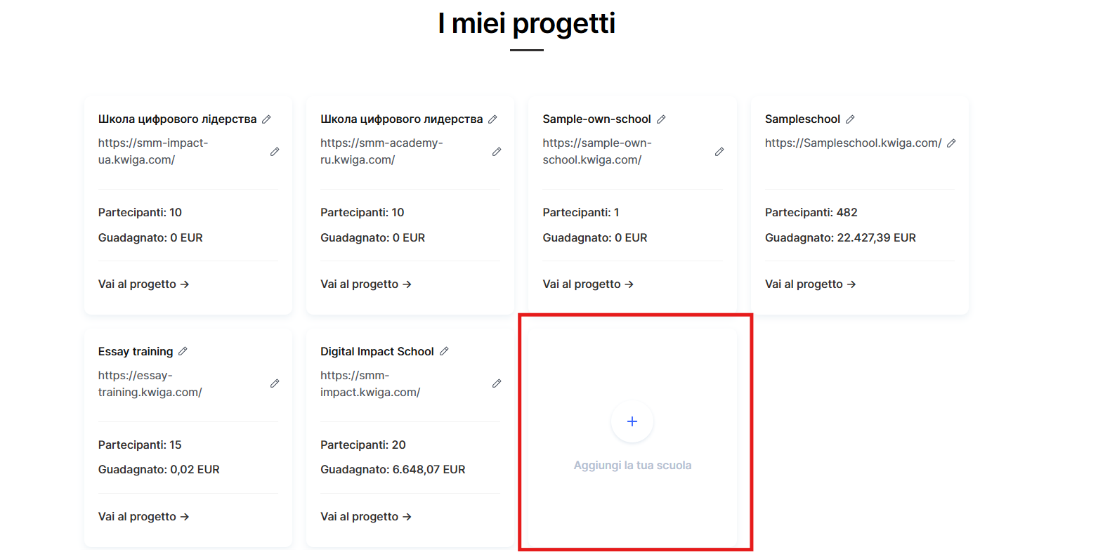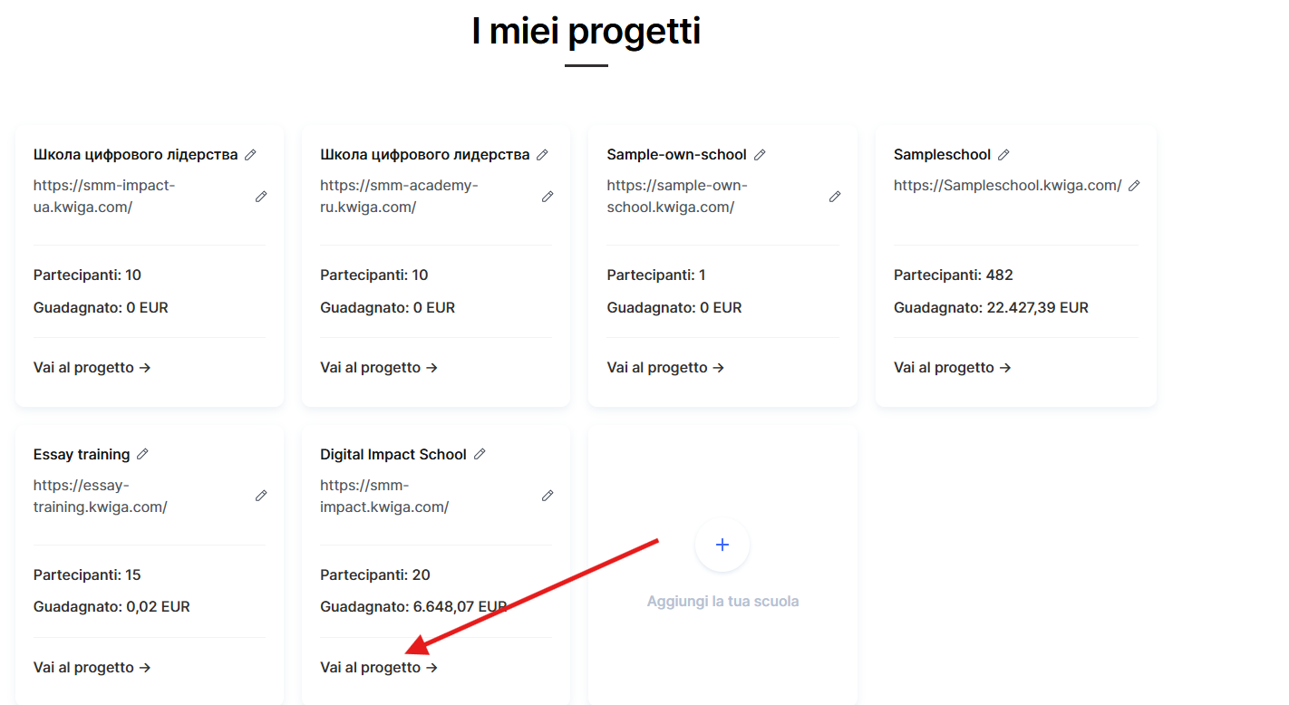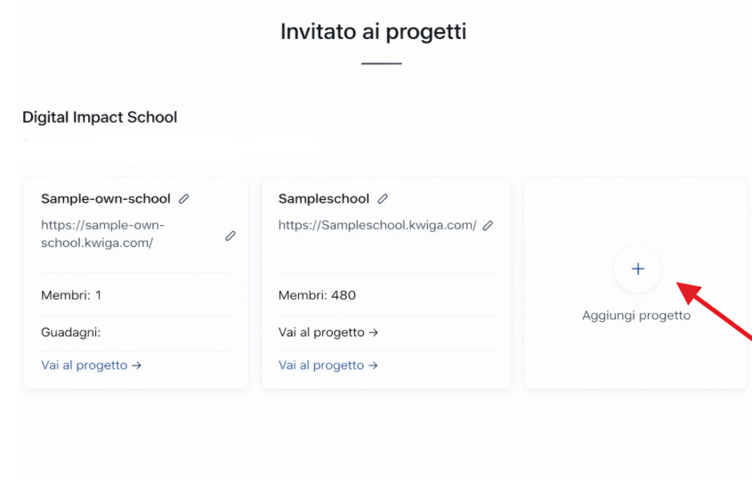 ● Creare la propria scuola — un nuovo progetto in cui sei tu il proprietario.