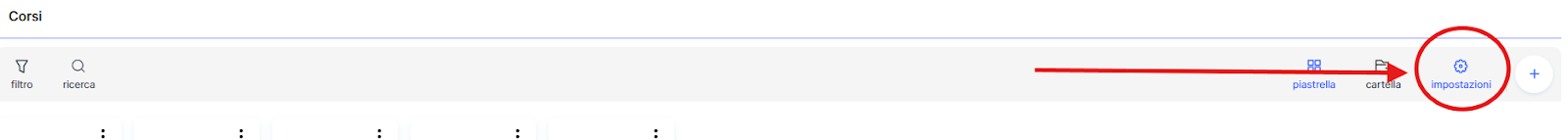 Per farlo, vai nel menu Corsi e accedi a una delle sezioni del blocco Prodotti — ad esempio, Corsi — quindi apri le Impostazioni.
