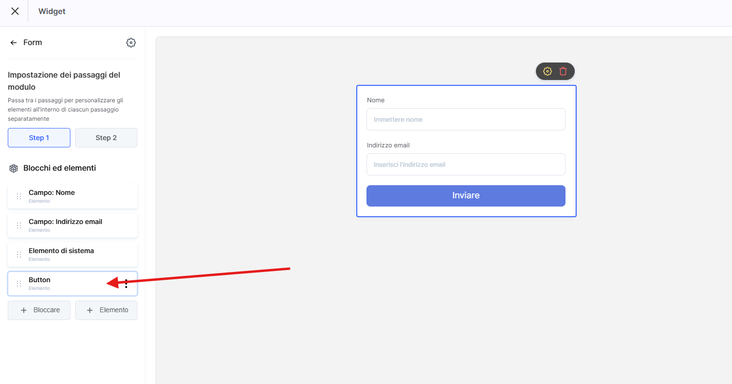 ● Pulsante – per attivare azioni aggiuntive, come reindirizzare a un’altra pagina