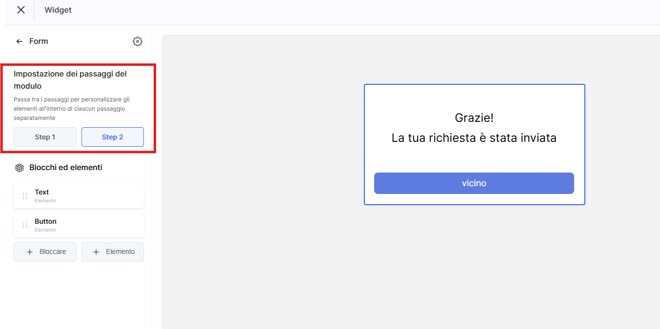● Rimanere nel blocco attuale — Mostrare il secondo step del modulo con un messaggio di conferma