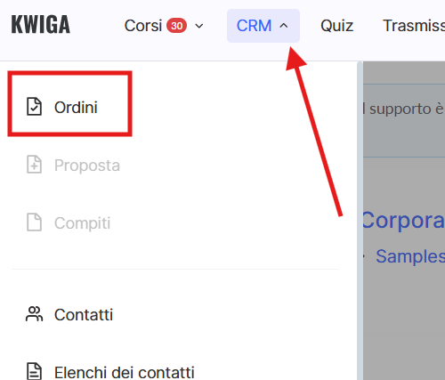 Tutti gli ordini ricevuti dai partecipanti tramite le pagine di offerta o creati manualmente vengono inviati automaticamente nella sezione CRM → Ordini.
