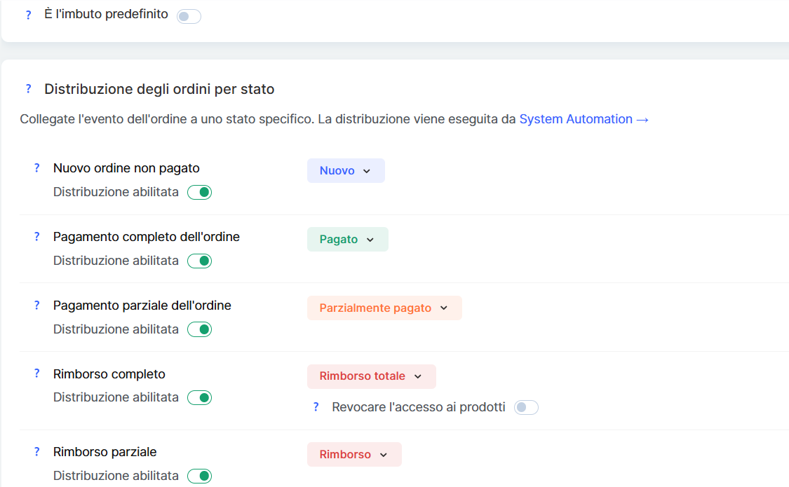 Questa automazione è pratica: gli ordini avanzano automaticamente lungo il funnel dopo la registrazione, il pagamento, il rimborso, ecc.