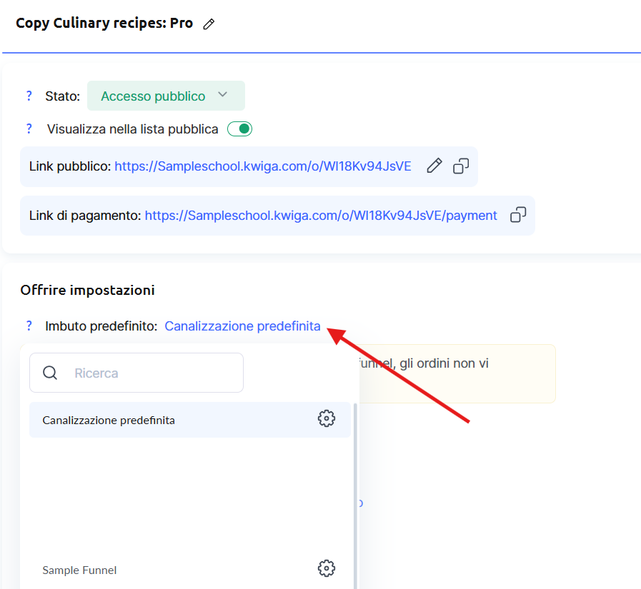 Puoi assegnare un funnel diverso a un’offerta specifica.