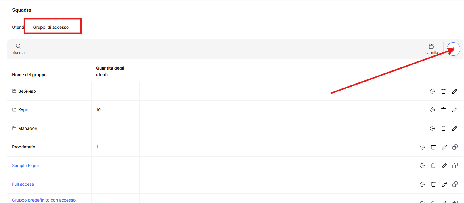 Nella scheda Gruppi di accesso, crea un gruppo che definisca a quali sezioni della piattaforma avranno accesso i tuoi collaboratori.