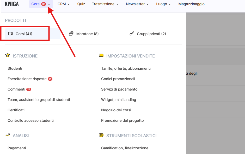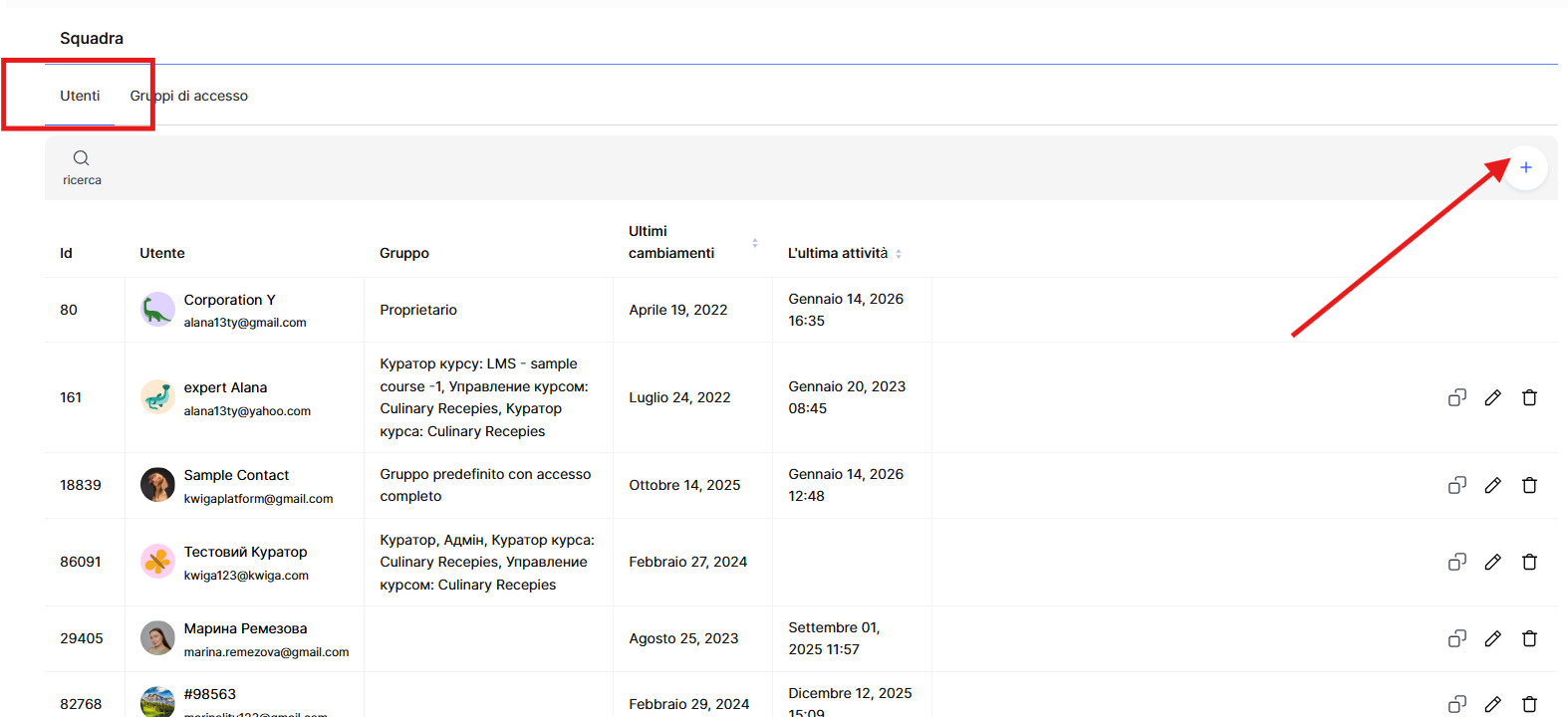 Se devi concedere a un utente specifico l’accesso a un determinato corso, ti consigliamo di configurarlo tramite il menu: Corsi → Team, Curatori e Gruppi di studenti.