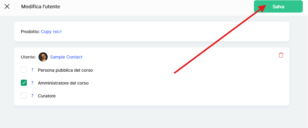 Se devi mantenere l’accesso di un utente al prodotto ma rimuovere solo il suo ruolo di assistente: