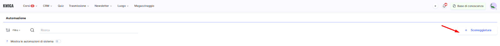 Per creare un’automazione, seleziona Automazione dal menu superiore e fai clic su +Script.