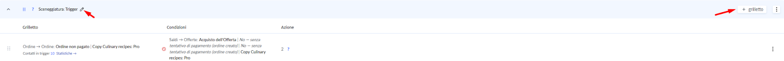 Trova il trigger nell’elenco generale; puoi rinominarlo con qualcosa di più comprensibile per facilitare la navigazione tra le automazioni create.