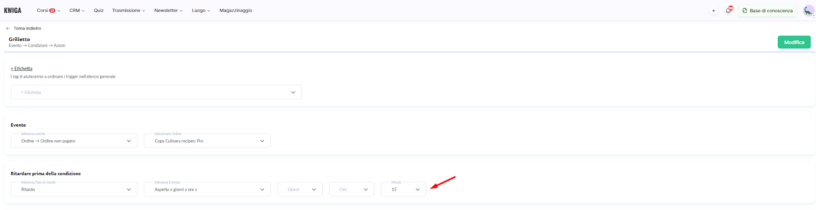 Pertanto, imposta un ritardo: il tempo che prevedi sia necessario al cliente per completare il pagamento. Può essere di 5 minuti, mezz’ora o alcune ore.