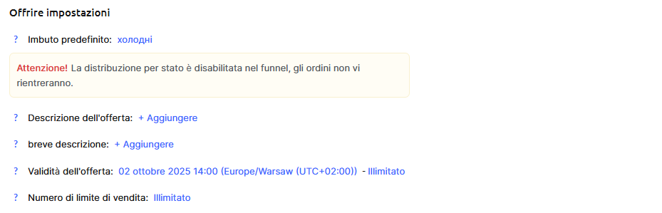 Funnel predefinito: puoi indicare il funnel di vendita a cui verranno assegnati gli ordini di questa offerta o lasciarlo invariato.