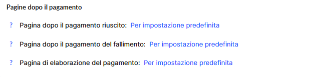 Per impostazione predefinita, lo studente viene reindirizzato a una pagina standard di ringraziamento (o alla pagina corrispondente in caso di pagamento non riuscito), da cui può accedere alla propria area personale. In questa sezione puoi specificare un’altra pagina alla quale reindirizzare l’utente dopo il pagamento. Potrai sempre modificare questa impostazione in seguito.