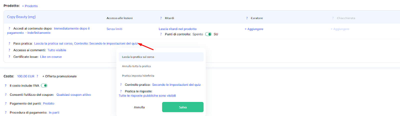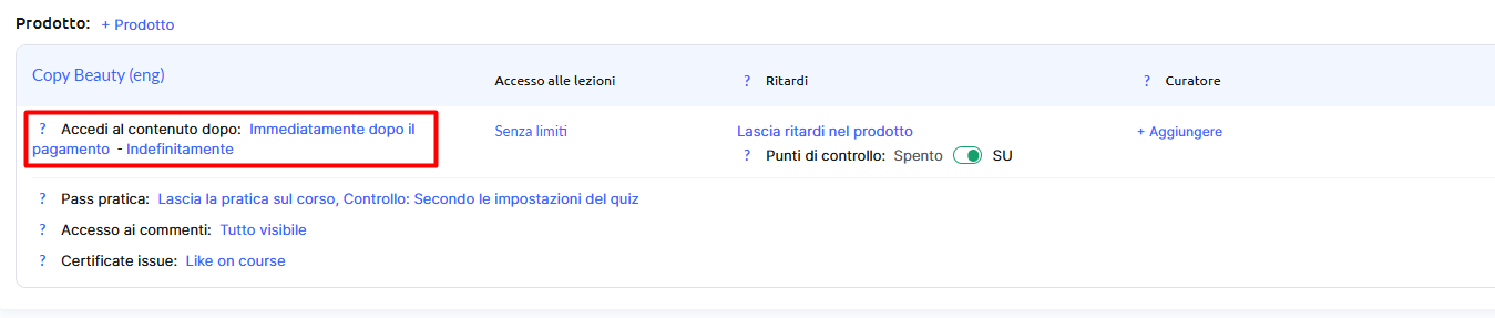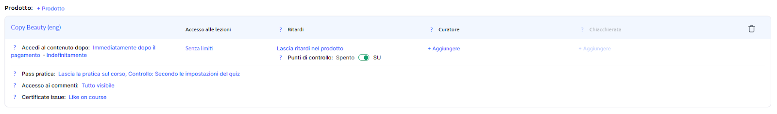 Se il corso include punti di controllo (come compiti o quiz obbligatori per proseguire), mantieni attiva questa opzione anche nell’offerta.