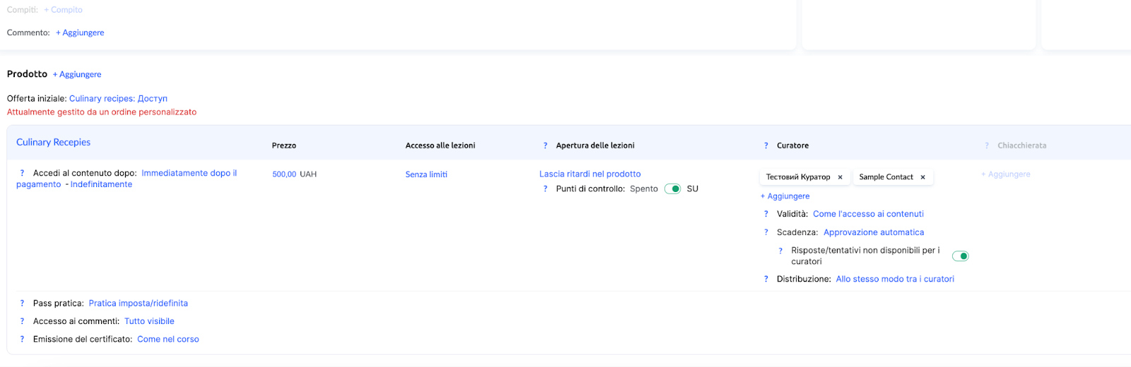 Se modifichi un ordine che è stato creato automaticamente al pagamento dell'offerta, durante il processo di modifica viene generata una copia speciale dell'offerta. Questo verrà indicato nell'ordine: viene aggiunta "Copia di sistema" prima del nome dell'offerta. Tutte le modifiche successive all'offerta originale non influenzeranno più l'accesso di questo cliente, poiché il suo accesso diventa individuale.
