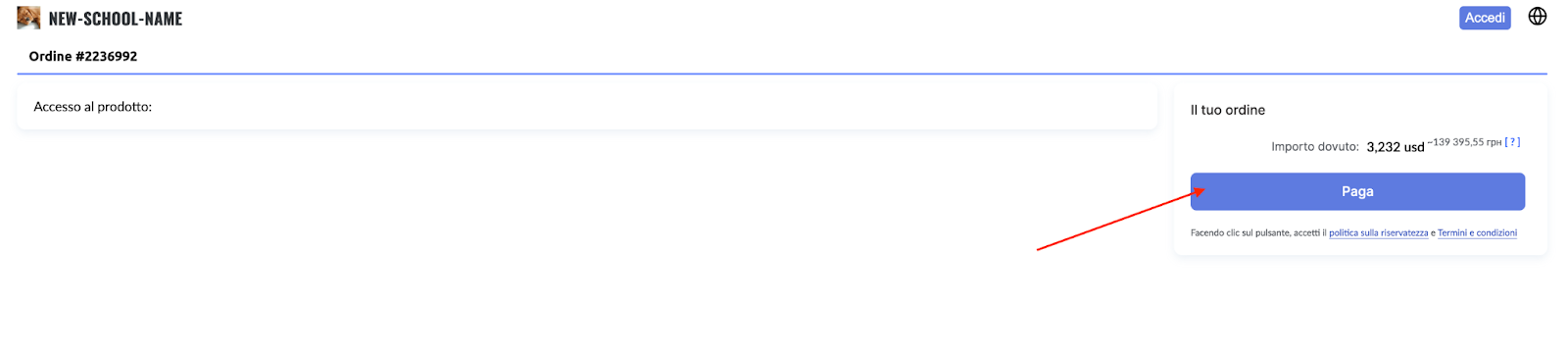 In questo caso, i messaggi di conferma del pagamento e i link di accesso verranno inviati all’indirizzo email specificato.