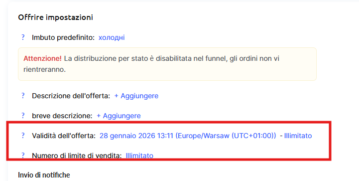 Configurazione dell’offerta