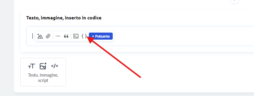 Scorri verso il basso e trova la sezione in cui desideri inserire il pulsante. Aggiungi un testo di supporto, seleziona l’area e, dal menu, scegli Codice (HTML).